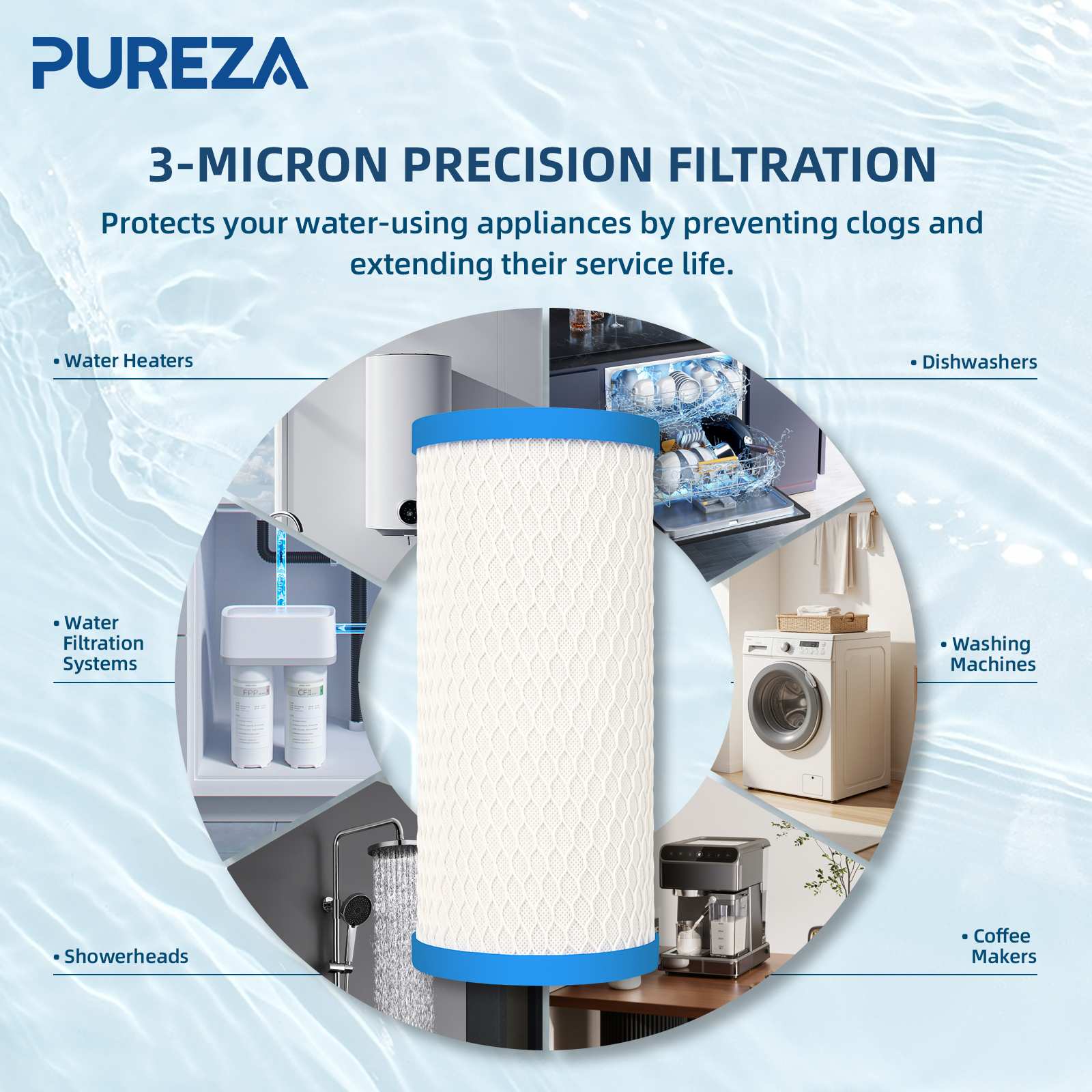 With a filtration accuracy of 3 microns, it captures fine particles such as rust, sand, and sediment before they enter your water supply. This ensures cleaner, safer water throughout your home and extends the life of downstream filters and appliances.