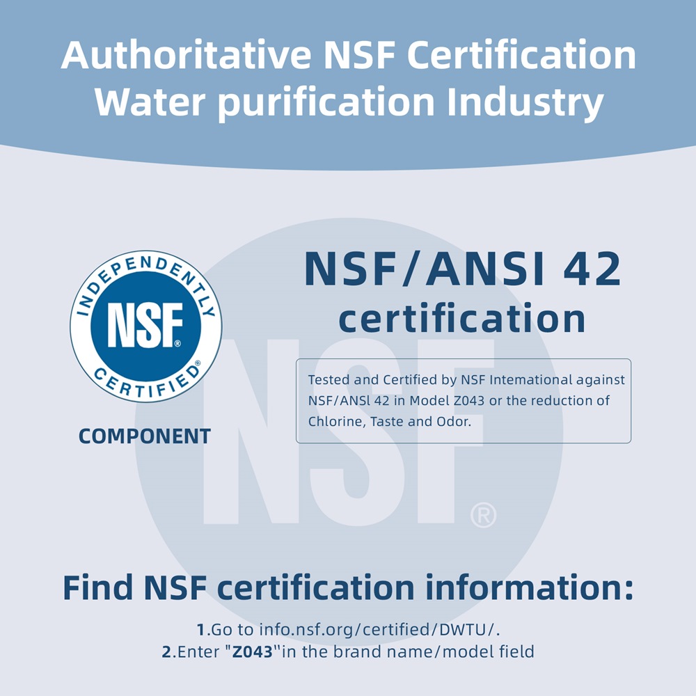 NSF 42&53&401&372 Certifications, EPA Certification, TüV Certification, ISO9001 Certification, CE Certification, RoHS Certification etc. |